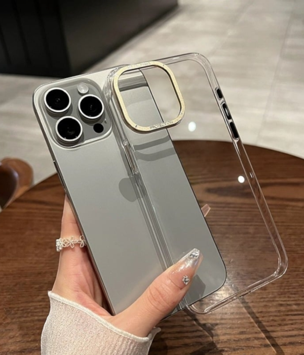 Premium ultra thin transparent iPhone case with anti yellow body & metal camera ring protection.
