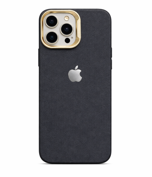 Premium black PU leather texture soft iPhone case with super drop protection and metal camera ring. Stylish unisex design with shock-absorbing protection and perfect fit. Limited stock available.